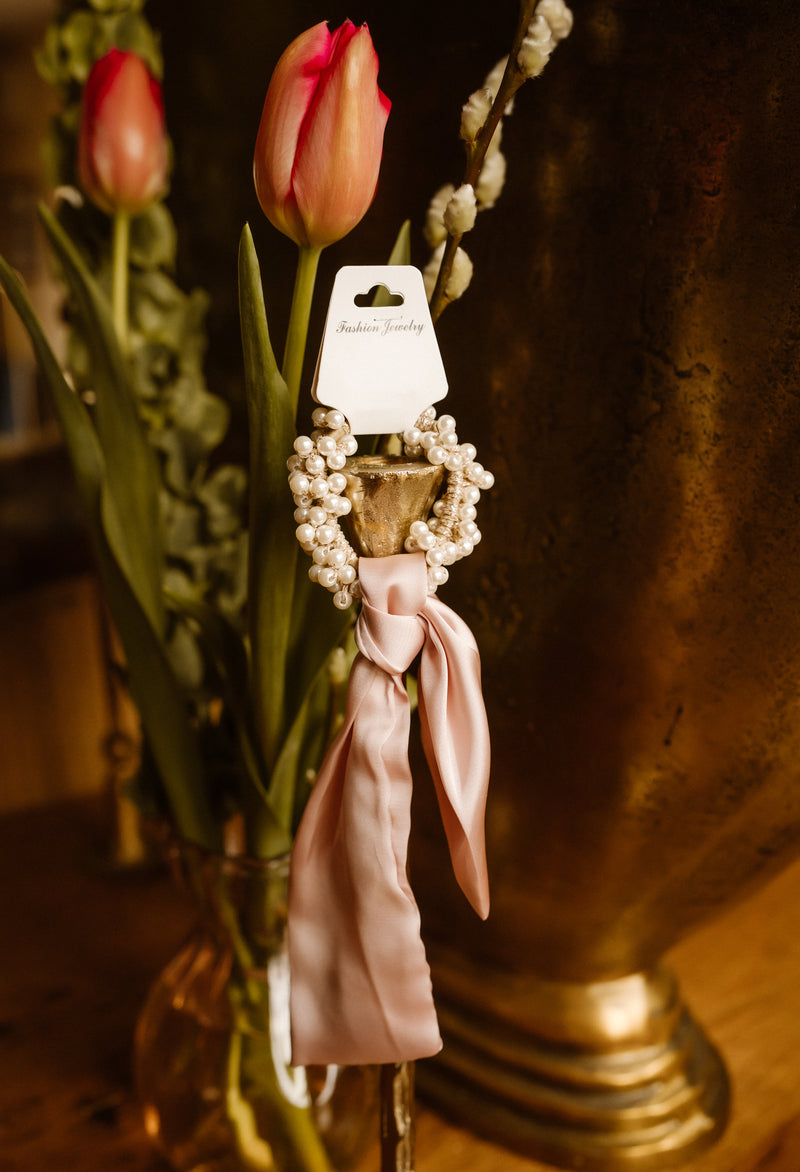 Parel haaraccesoire met strik roze
